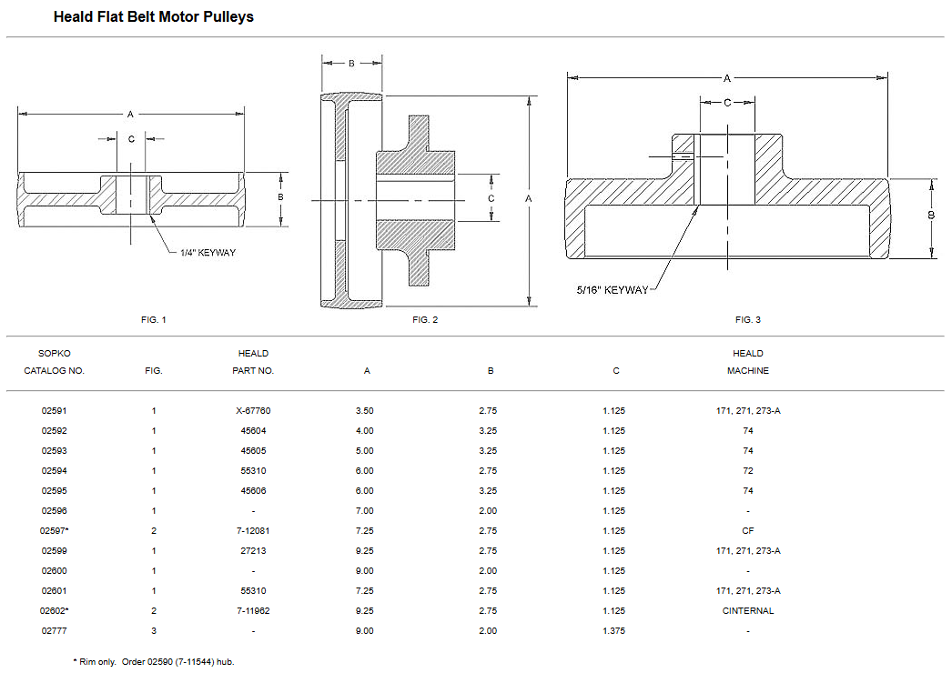 Durable, precision ground pulleys built for New Style Heald Cross Groove Flat Belt and 10 or 16 Groove "J" Section Poly-V Belt. Also available for Old Style Heald Flat Belt and 10 or 16 Groove "J" Section Poly-V Belt.